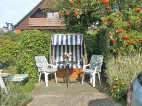 Ob im Strandkorb oder auf der überdachten Terrasse überall kann man relaxen .
